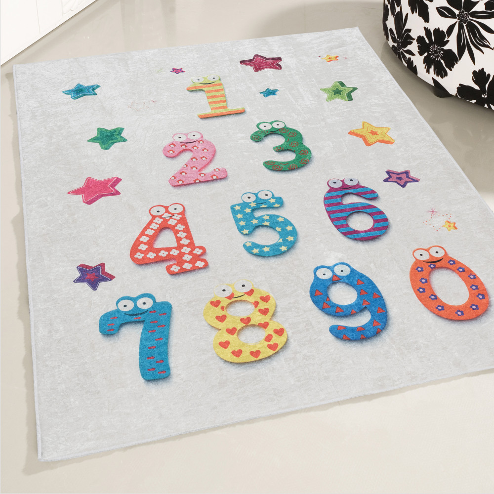 Aranyos, szám mintázatú gyerekszőnyeg. Több méretben kapható. Könnyen tisztítható, antisztatikus, antiallergén, színét hosszú távon megőrzi.